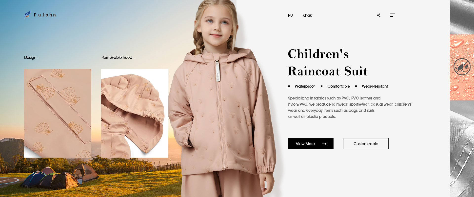 Jiangxi Fujohn Garment Co., Ltd. is a modern enterprise integrating garment production and foreign trade export, nestled in the picturesque city of Ji'an, Jiangxi Province. We specialize in the application of a diverse array of innovative fabrics, including PVC, PVC single and double-sided leather, nylon/PVC composites, PVC knitwear, PVC/polyester, nylon/PU, EVA, and PEVA. With precision and dedication, we craft a wide range of lifestyle products and plastic items, such as protective raincoats, sportswear, casual wear, children's clothing, luggage, and suits. Leveraging our exceptional quality, good reputation, competitive pricing, and efficient and secure logistics services, our products have been exported globally, garnering numerous praises and trust from customers, and establishing ourselves as a reliable partner in their minds ...